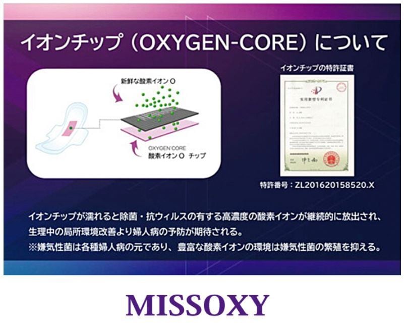 ⑤生理・尿漏れの独特な臭いは皆無。海外特許チップから、殺菌・抗菌・消臭効果のある高濃度酸素イオンを放出。